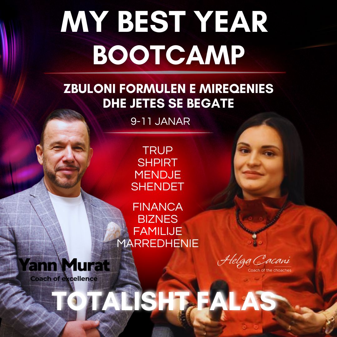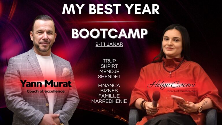 MY BEST YEAR BOOTCAMP është një përvojë 3-ditore transformuese që të ndihmon të krijosh qartësi, drejtim dhe një plan konkret për vitin tënd. Fokusohen mendësia, qëllimet, balanca emocionale dhe ndërtimi i një vizioni të qëndrueshëm për jetën personale dhe profesionale.